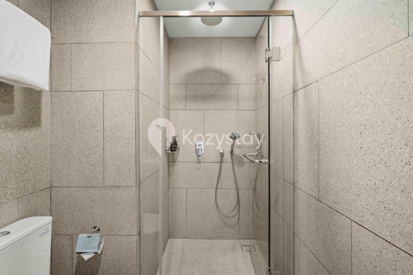 One-Bedroom Apartment. The air-conditioned apartment features 1 bedroom and 1 bathroom with a shower and a bidet. In the kitchen, guests will find a stovetop, a refrigerator, kitchenware and a microwave. Featuring a balcony with city views, this apartment also provides a seating area and a flat-screen TV with streaming services. The unit offers 1 bed.